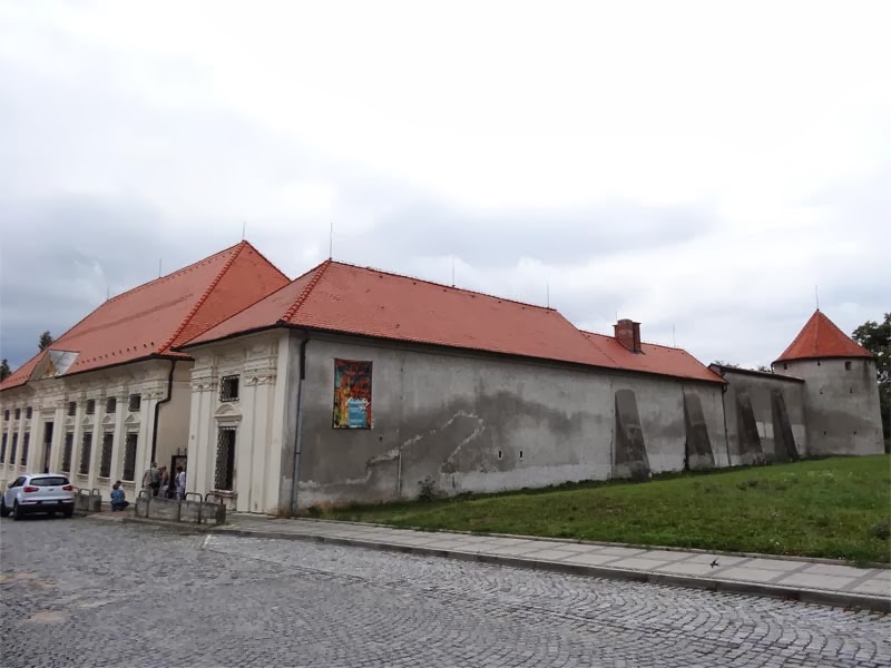 Von dem auf eine Burganlage des 13.Jh. zurückgehenden Schloß (Zámek) an der nördlichen Stadtmauer ist nicht mehr viel übrig nachdem es bei der schwedischen Belagerung der Stadt 1643 zerstört und die Ruine später abgerissen wurde. Ein barocker Saal wurde dann neuerrichtet, aber mehr nicht mehr. Hier das einstige Schloßtor, hinter dem seit 1927 ein Comenius-Museum eingerichtet ist. In den 50er Jahren wurde die Comenius-Statue davor aufgestellt.