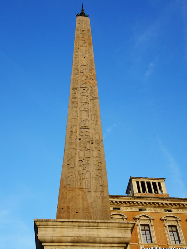 Der 32 Meter hohe, dreieinhalbtausend Jahre alte Lateranische Obelisk steht auf der Piazza San Giovanni in Laterano vor der Lateranbasilika. Er ist der größte aller Obelisken in Rom. Ursprünglich in Ägypten für Thutmosis III. (Pharao 1479–1425 v.u.Z.) geschaffen und östlich vom Tempel des Amun in Theben aufgestellt, ließ ihn 337 Kaiser Konstantin von Karnak nach Alexandria bringen. Das ursprüngliche Ziel des Obelisken war nicht Rom, sondern Konstantinopel, das Konstantin 330 zur neuen Hauptstadt des römischen Reiches gemacht hatte. Der Kaiser starb aber 337 und der Stein blieb zunächst in Alexandria liegen. Auf dem Sockel ist zu lesen, dass Konstantins Sohn, Kaiser Constantius II., den Obelisken nach Rom überführen und 357 im Circus Maximus als Geschenk an den Senat und das römische Volk aufstellen ließ. Nach einem Erdbeben stürzte der Obelisk später um, zerbrach in mehrere Stücke, wurde liegen gelassen und vergessen. Erst 1587 wurde er im Auftrag von Papst Sixtus V. ausgegraben und 1588 ließ ihn Domenico Fontana, der seine Signatur hinterließ, an seinen heutigen Standort bringen und restaurieren. Auf der Spitze wurde ein Kreuz als Symbol der christlichen Macht befestigt.
